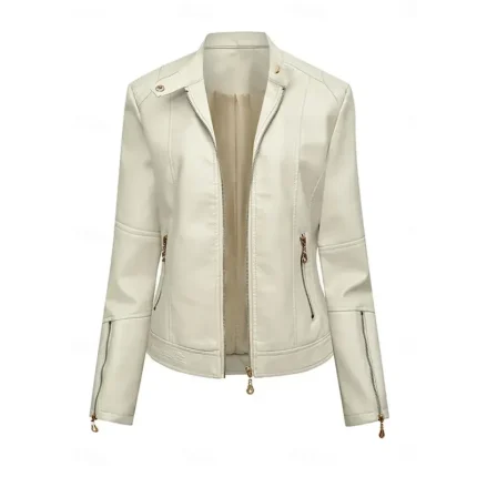 Women’s Faux Leather Jacket Casual Jacket Comfortable Breathable Zipper Pocket Fashion Casual Plain Vacation Street Casual Daily Wear Zipper Short Tur