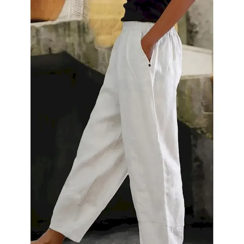 Women’s Cotton Linen Pants Baggy Pants Linen Like Solid Color Fashion Ankle-Length Plain Side Pockets Comfort Inelastic Casual Weekend White Regular F