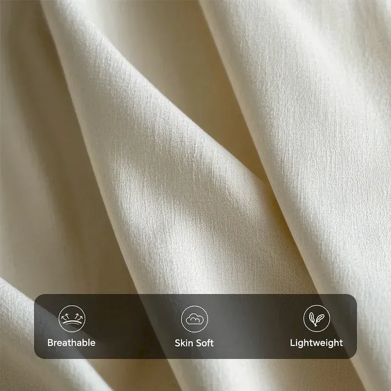[Fabric] Crafted from cotton and linen, this set offers a micro-elastic texture that provides comfort and breathability, perfect for spring and fall seasons.