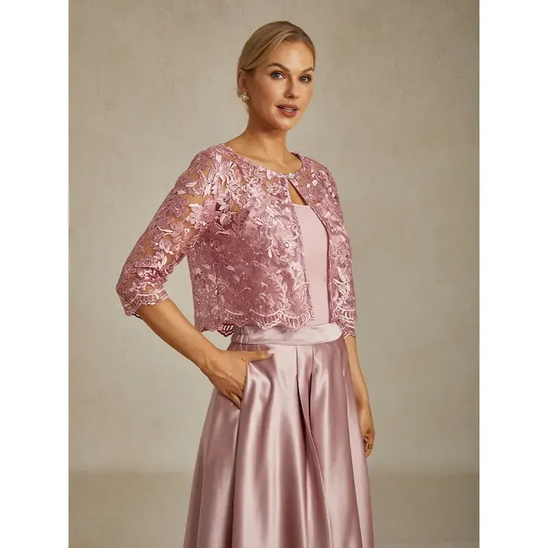 Women’s Lace Tops Jacket Floral Elegant Party Crew Neck Crop Tops Wedding Guest Party Evening Wear Lace Embroidered Blush Pink Summer Spring Fall 2025