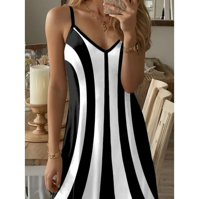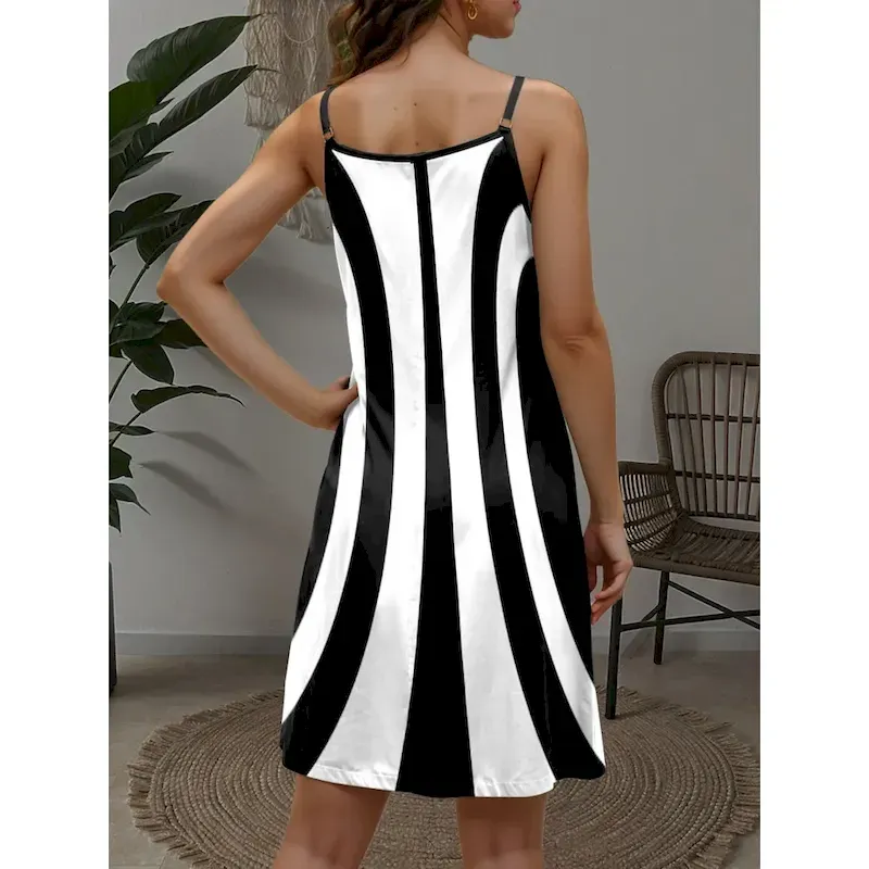 Women’s Mini Dress A Line Dress Slip Dress Off The Shoulder Dress Vacation Casual Going out Beach Regular Fit Graphic Geometric Sleeveless V Neck Whit