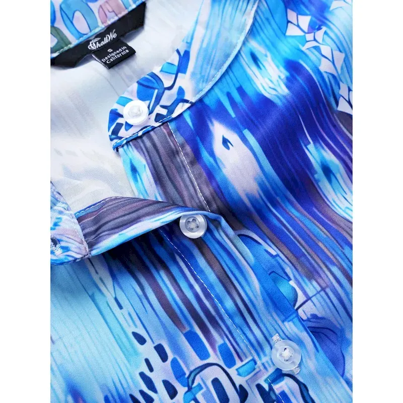 Women’s Shirt Basic Buttons Print Long Sleeve Regular Tops Casual Pink Blue Green Spring Fall 2025