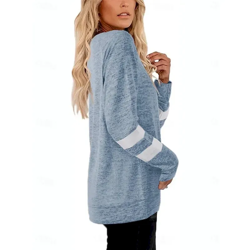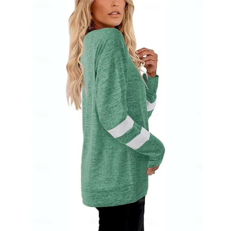 Women’s T Shirt Striped Fashion Stylish Modern Long Sleeve V Neck Regular Tops Daily Weekend Print Black Blue Green Khaki Summer 2025